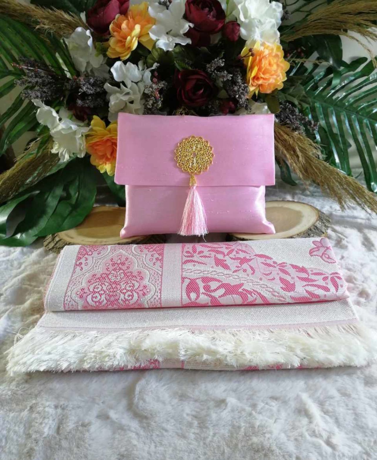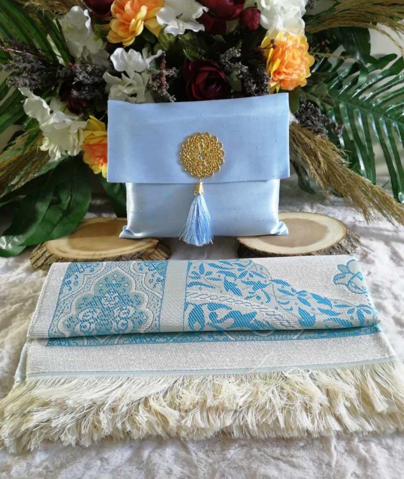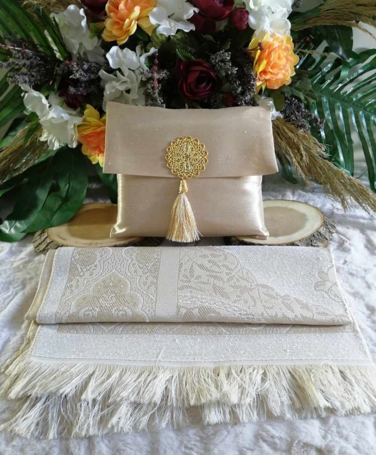 Çiçekli Kurdeleli Seccade Mini Kuran Set